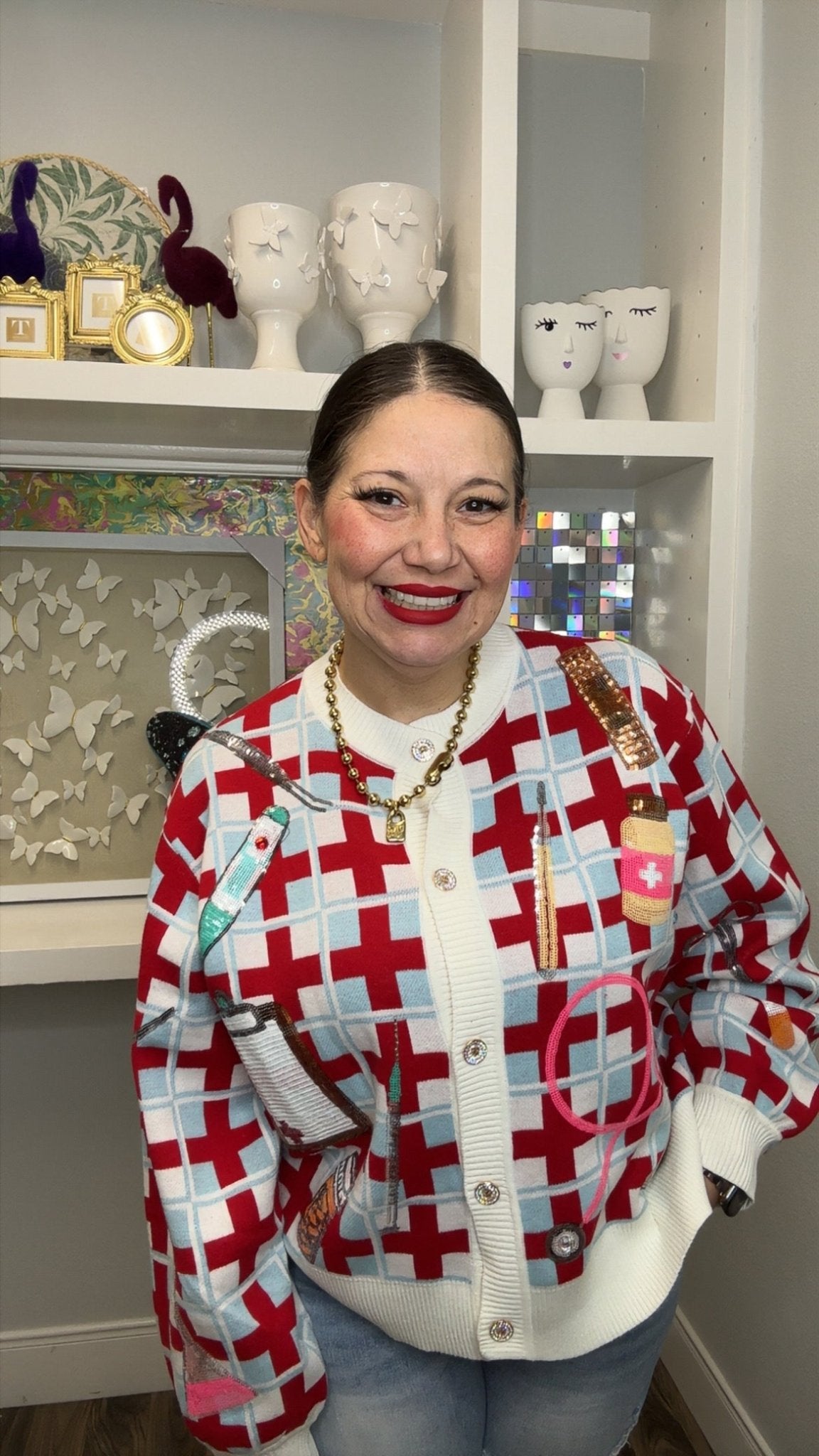 QOS Red & Blue Medical Supply Cardigan