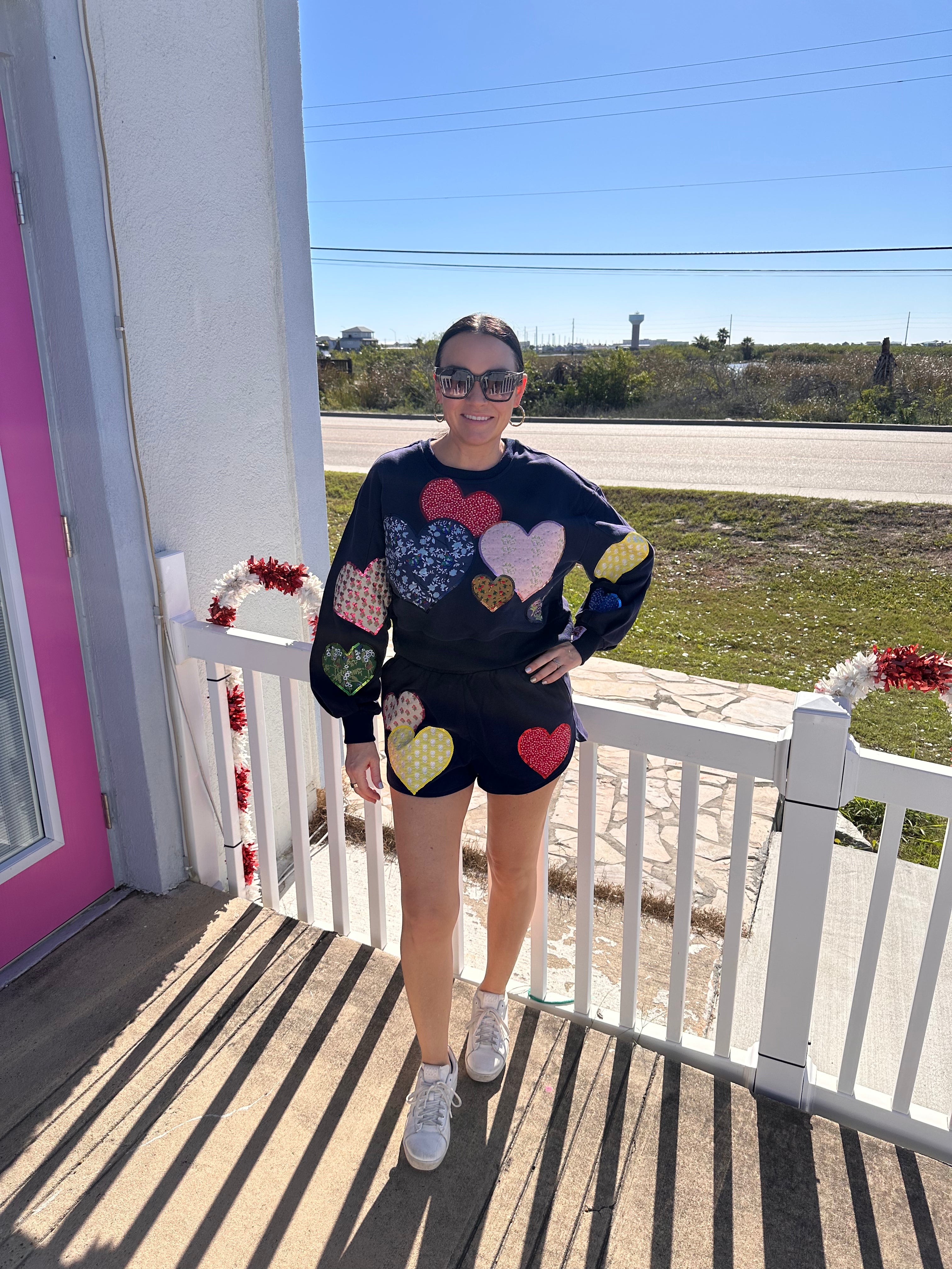Twirl into the spotlight with these adorable Navy Multi Embroidered Hearts Shorts! Featuring whimsical heart embroidery in vibrant colors scattered across a classic navy base, these shorts are perfect for little fashionistas who love to shine. The playful design brings joy to everyday wear, while the comfortable fit keeps kids moving and grooving all day long. Whether she's heading to school, playdates, or special occasions, these shorts are a delightful way to express personality and style. A must-have piece for any girl who wants to sparkle with confidence!
