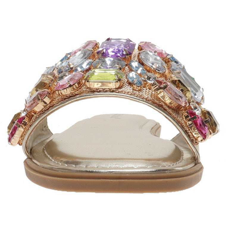 Step into effortless elegance with these sandals by Pierre Dumas, designed to elevate your everyday style. Adorned with sparkling crystals in a delightful multicolor arrangement, these open-toe slides not only catch the eye but also offer a soft cushioned sole for all-day comfort. Perfect for a casual brunch, a day at the park, or even a laid-back office look, these versatile sandals are your go-to choice for any occasion. Experience the blend of fashion and function as you showcase your unique style with every step!
