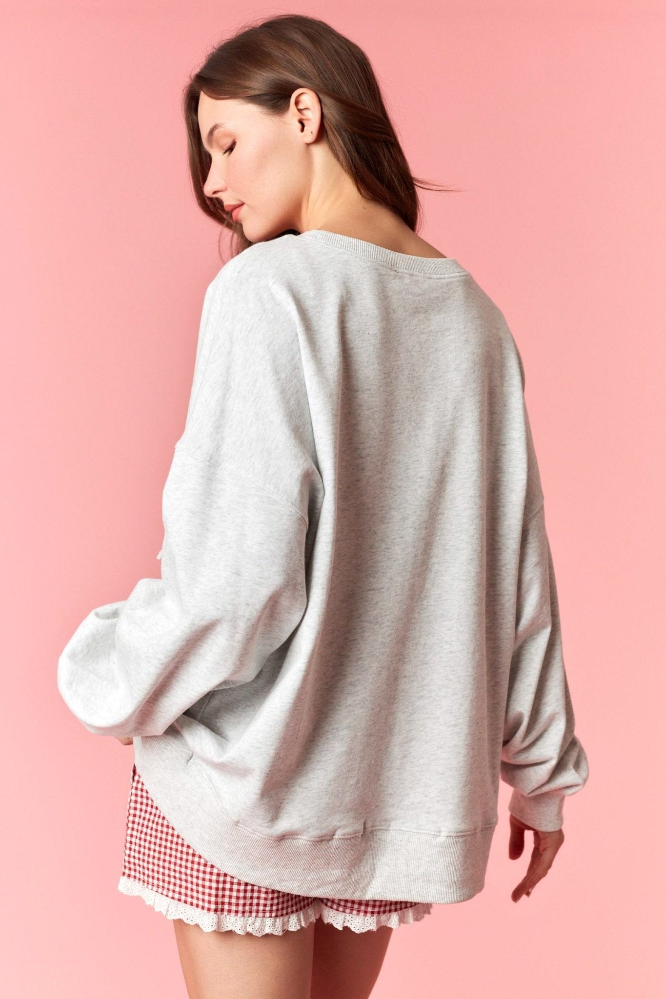 Embrace Timeless Americana with This Cozy French Terry Sweatshirt Featuring Sweet Gingham Flag Patches and Delicate Eyelet Lace Accents.