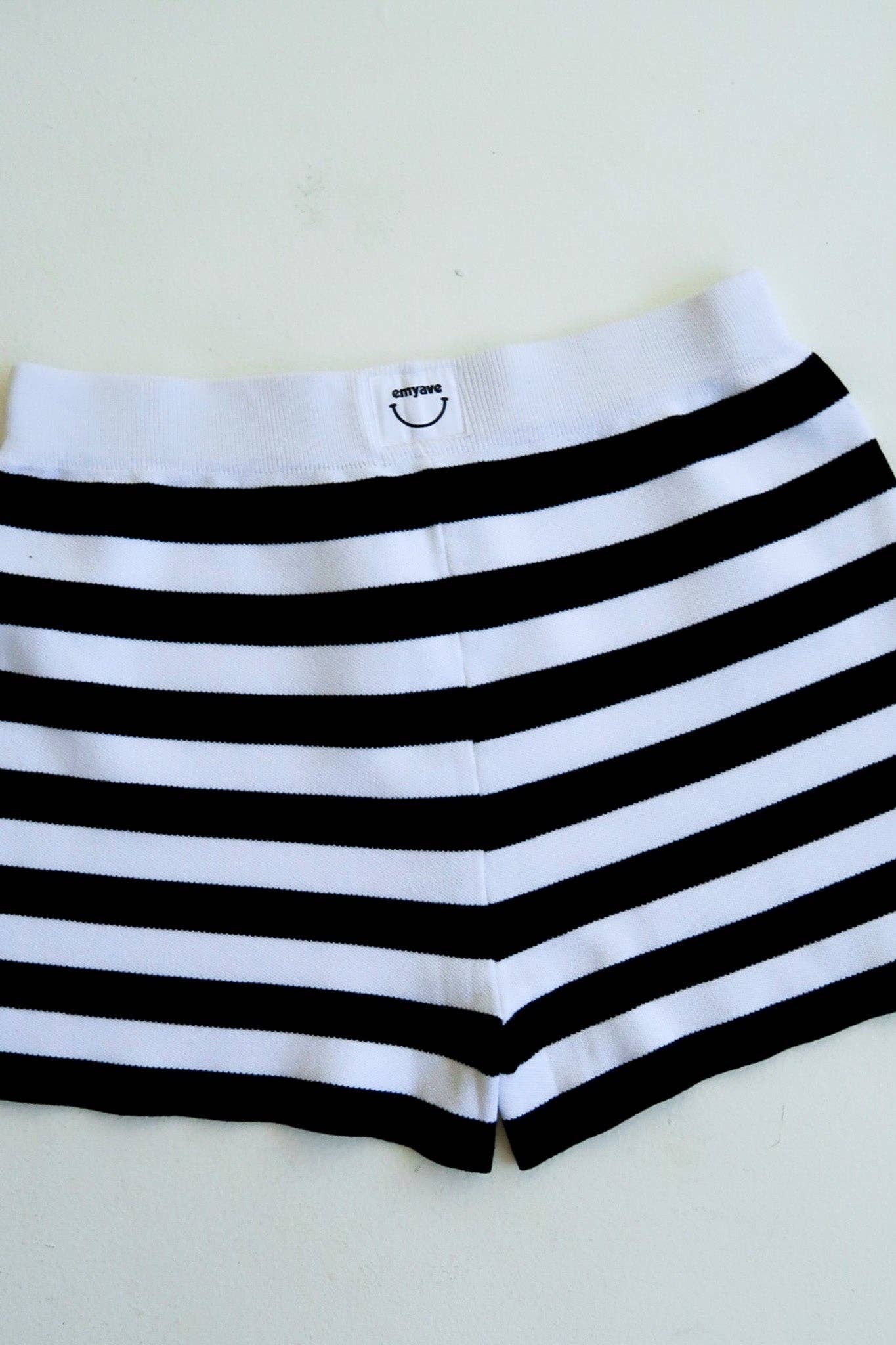 📦 Pre-Order Information: The item in your cart is a pre-order and is currently expected to ship on or around 9/15. Please note that this is an estimated timeline, and while we do our best to stick to it, unexpected delays — such as shipping hold ups or customs clearance — can occasionally occur. Orders with PRE-ORDER items in them all ship together! We truly appreciate your patience and understanding as we work to get your order out as quickly and smoothly as possible. Optic illusions, but make them wearable. The Monochrome Stripe Knit Shorts take black and white stripes and flip them into a cool girl staple. Knit with stretch, designed for comfort, and cut for easy movement, they’re classic but still bold enough to stand out. MATERIAL + FIT: 🎱 Black + white vertical stripe design 🎱 100% Viscose with natural stretch 🎱 Elastic waistband with a relaxed thigh fit 🎱 True to size STYLE WITH: 🎱