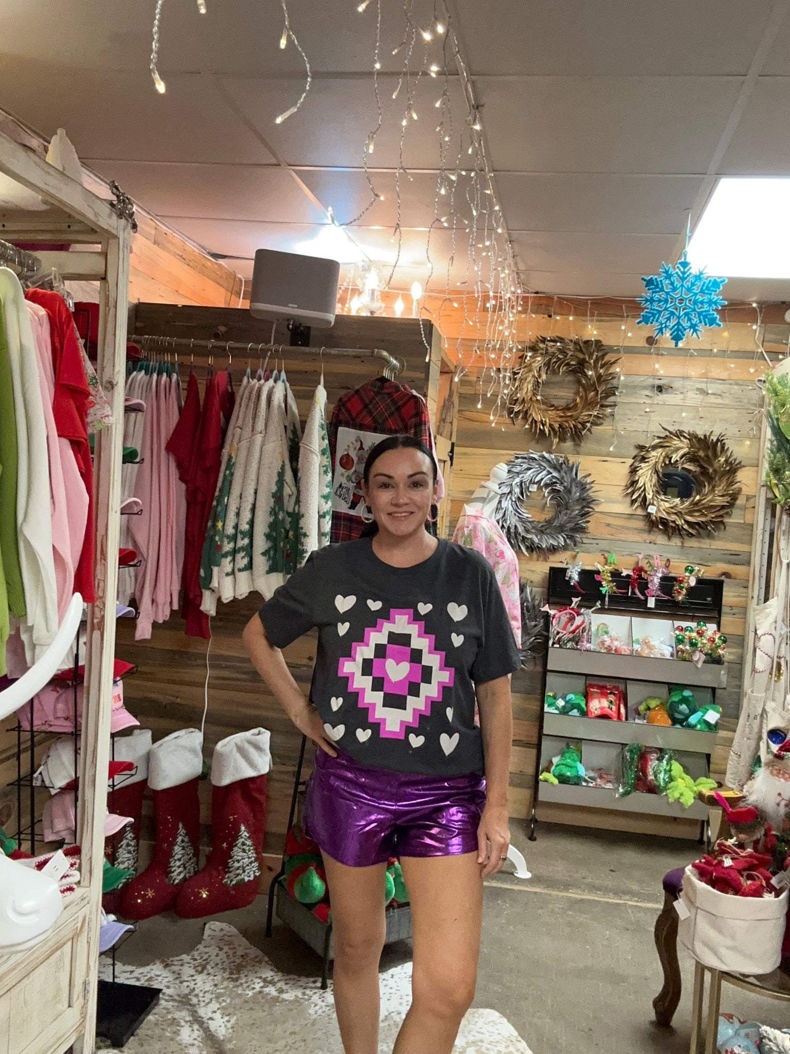 Shine bright and move with ease in these Purple Show Stopper Shorts. Featuring a fun, metallic purple finish and a comfy elastic waistband, they blend flashy style with all-day comfort. Perfect for dancing, lounging, or making a statement wherever you go!