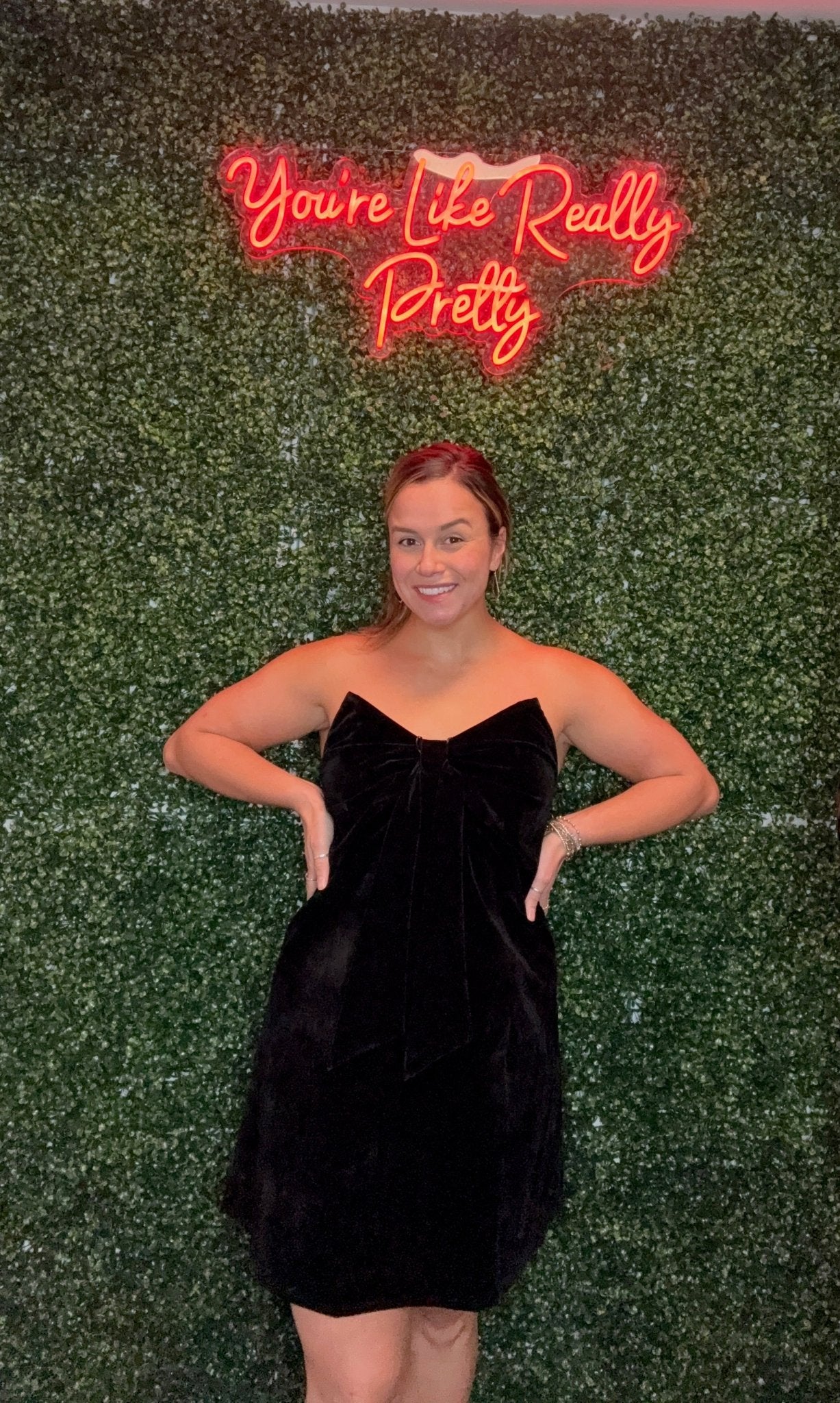 Whether you’re stepping into a holiday party, cocktail event, or a night out that calls for a little extra glamour, the Bow Affair Dress ensures all eyes are on you.