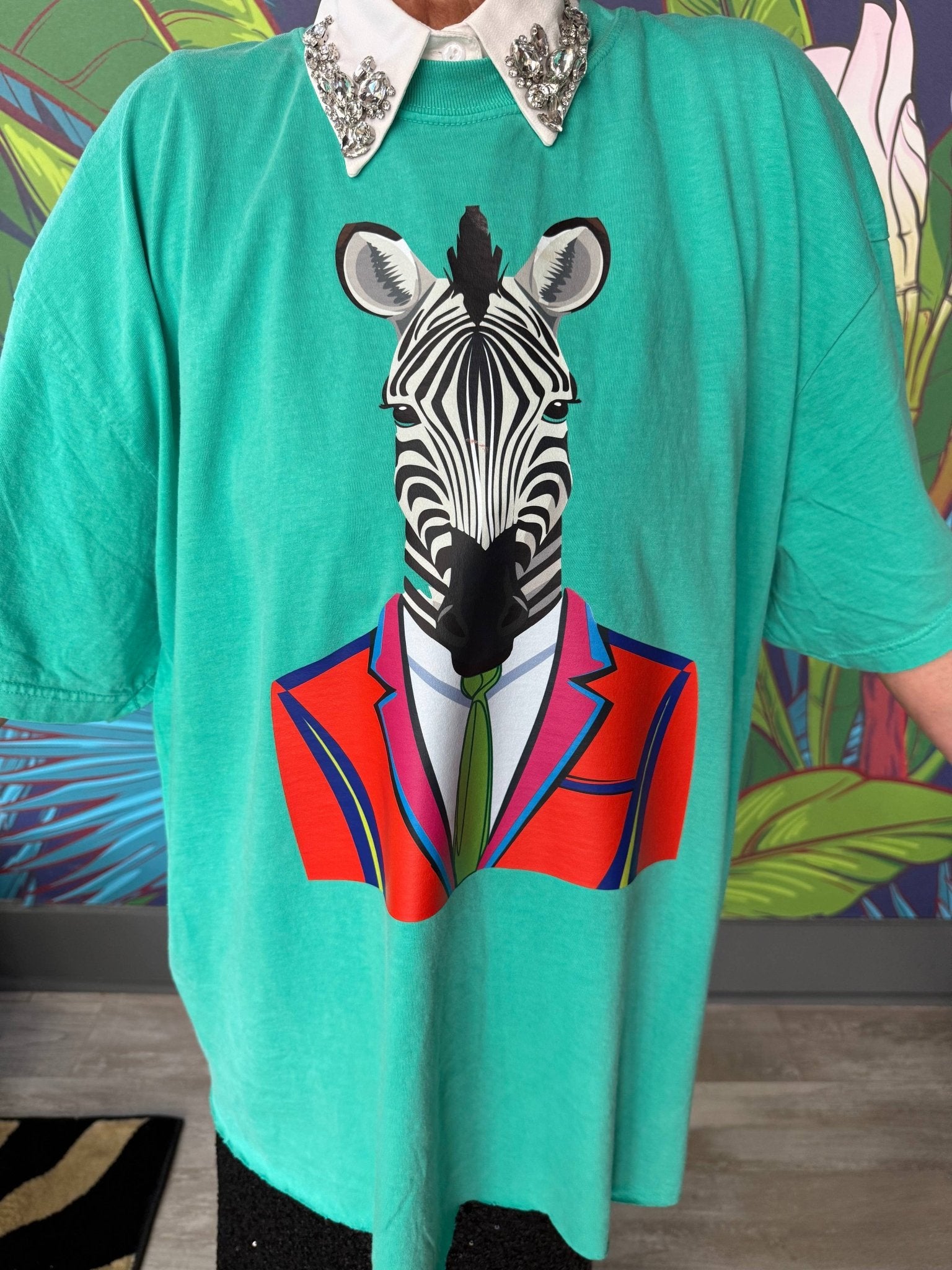 Show off your unique style with the Zebra Wild Graphic Tee, featuring a cool zebra dressed in a sharp suit and tie. The back proudly displays "BE YOUR OWN MUSE," inspiring you to embrace your originality every day. Perfect for those who love a playful twist on classic fashion!