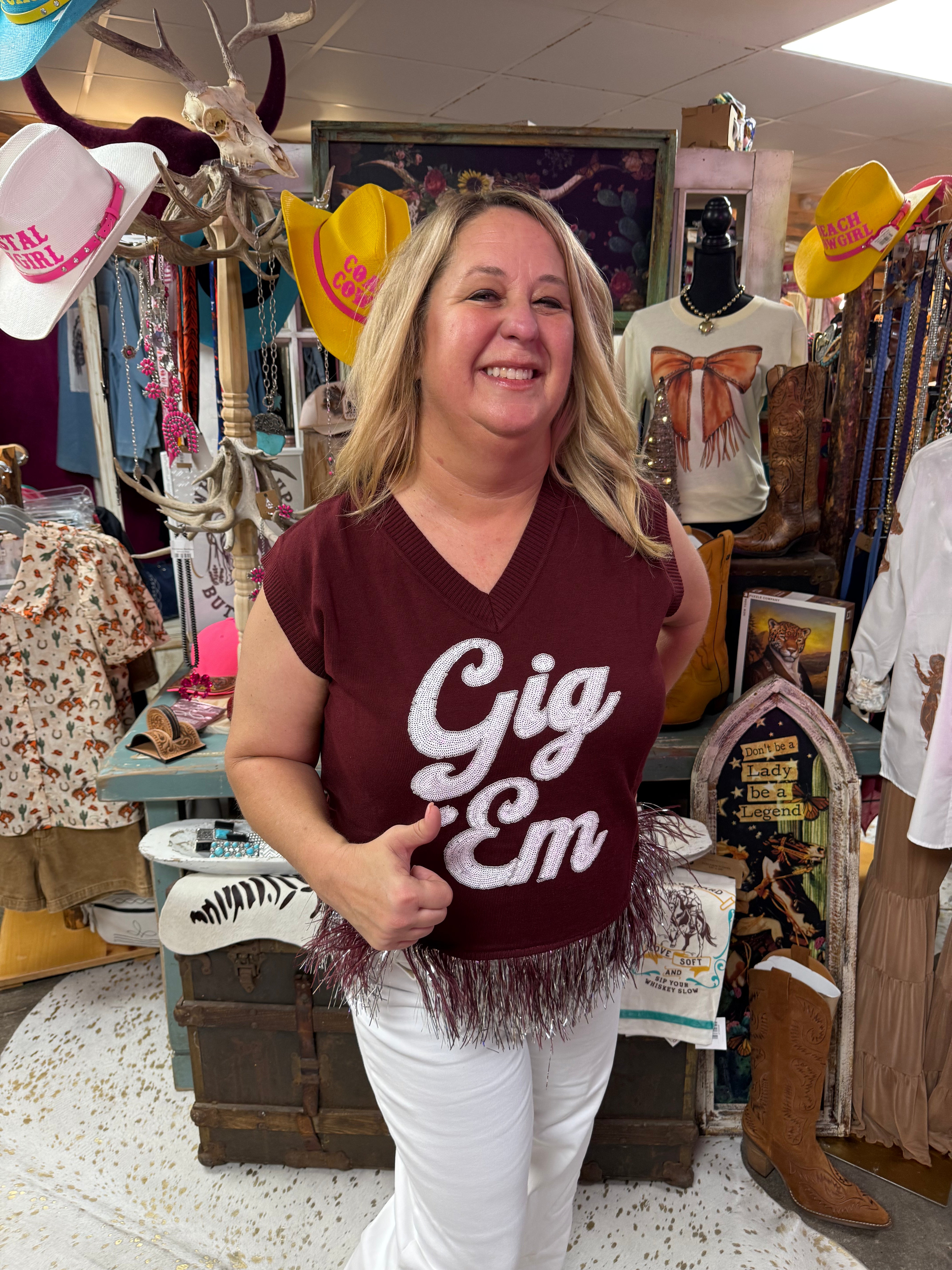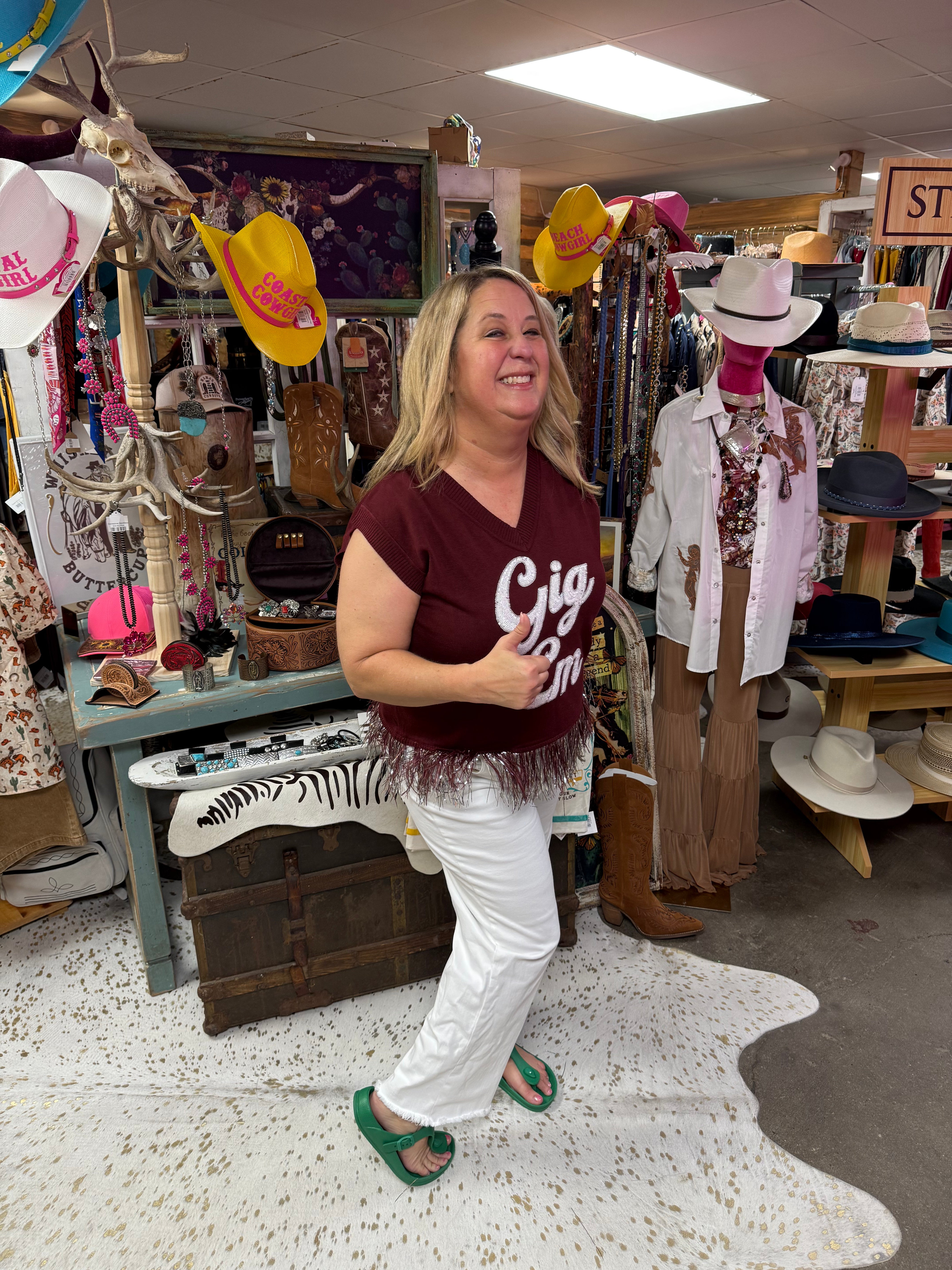 Such a perfect Aggie piece for GAMEDAY! Grab the Queen of Sparkles • QOS • Licensed Texas A&M Feather Bottom Tank Sweater today!!