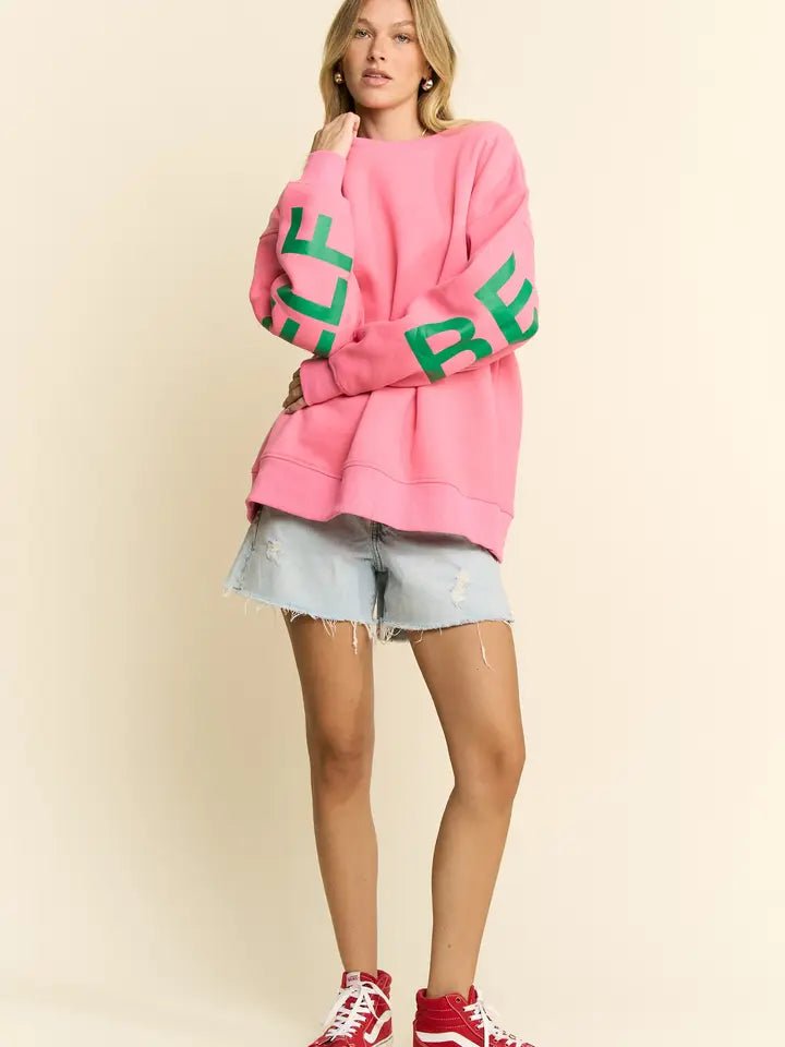 Embrace your authentic self in this comfortable oversized sweatshirt featuring an empowering "Be Yourself Love Yourself" print. Crafted from soft, breathable fabric, this relaxed-fit piece is perfect for casual days when you want to feel confident and cozy. The bold graphic serves as a daily reminder to celebrate who you are. Ideal for layering or wearing solo, this versatile sweatshirt pairs effortlessly with jeans, joggers, or leggings for an effortlessly cool look.