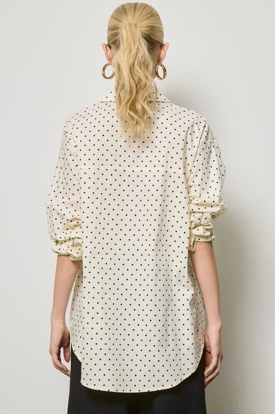 Playful meets polished in the Dot Your Day Oversized Shirt. Designed in a relaxed, easygoing silhouette, this breezy button-up features a classic collar and a timeless polka dot print that adds just the right pop of personality. The oversized fit drapes effortlessly, making it perfect for layering or wearing loose for that carefree, borrowed-from-the-boys vibe. Pair it with sleek trousers or denim for a look that’s equal parts chic and fun—because who says classic can’t have a little attitude?