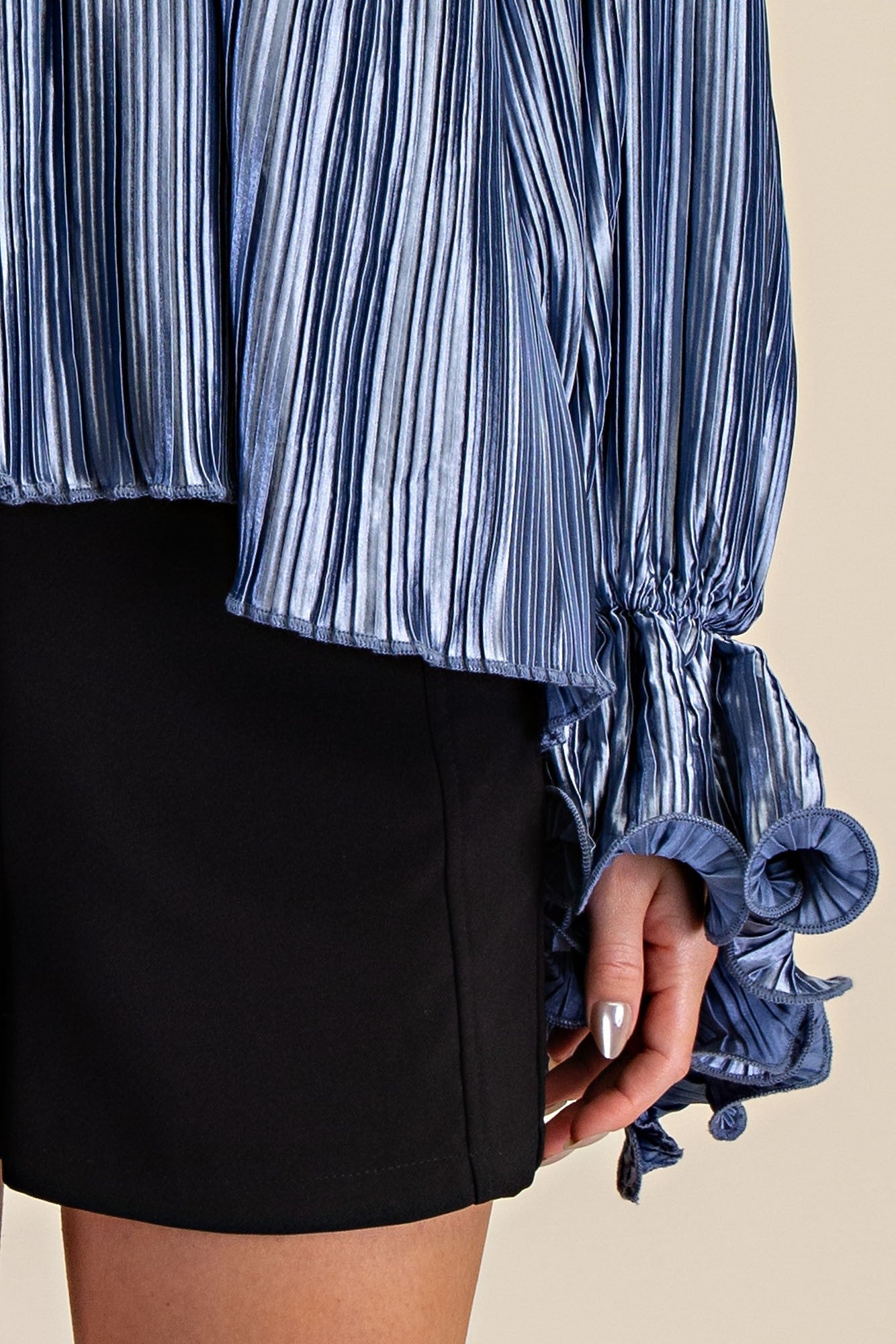 Whimsey Ruffled Pleated Blouse-Slate