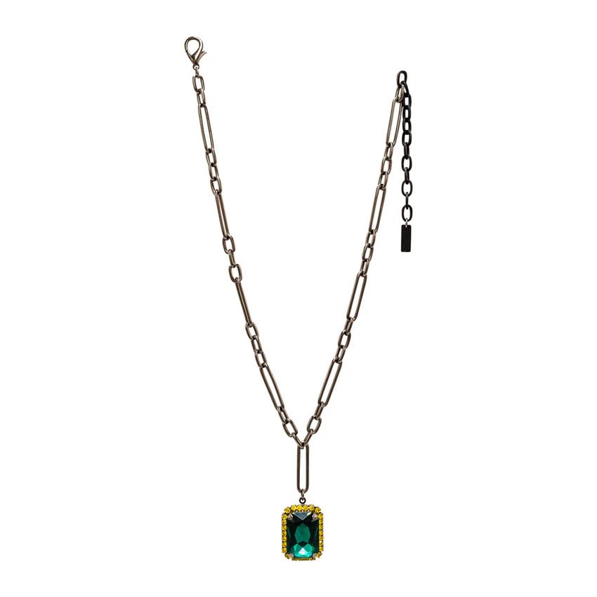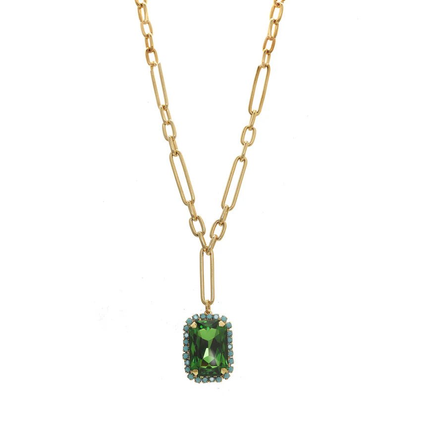 Upgrade your jewelry game with the Mini Soleil Necklace. Crafted from antique gold-plated brass, this necklace comes in Fern Green and Emerald, adding a touch of elegant charm to any outfit. A must-have for any fashion-forward individual.