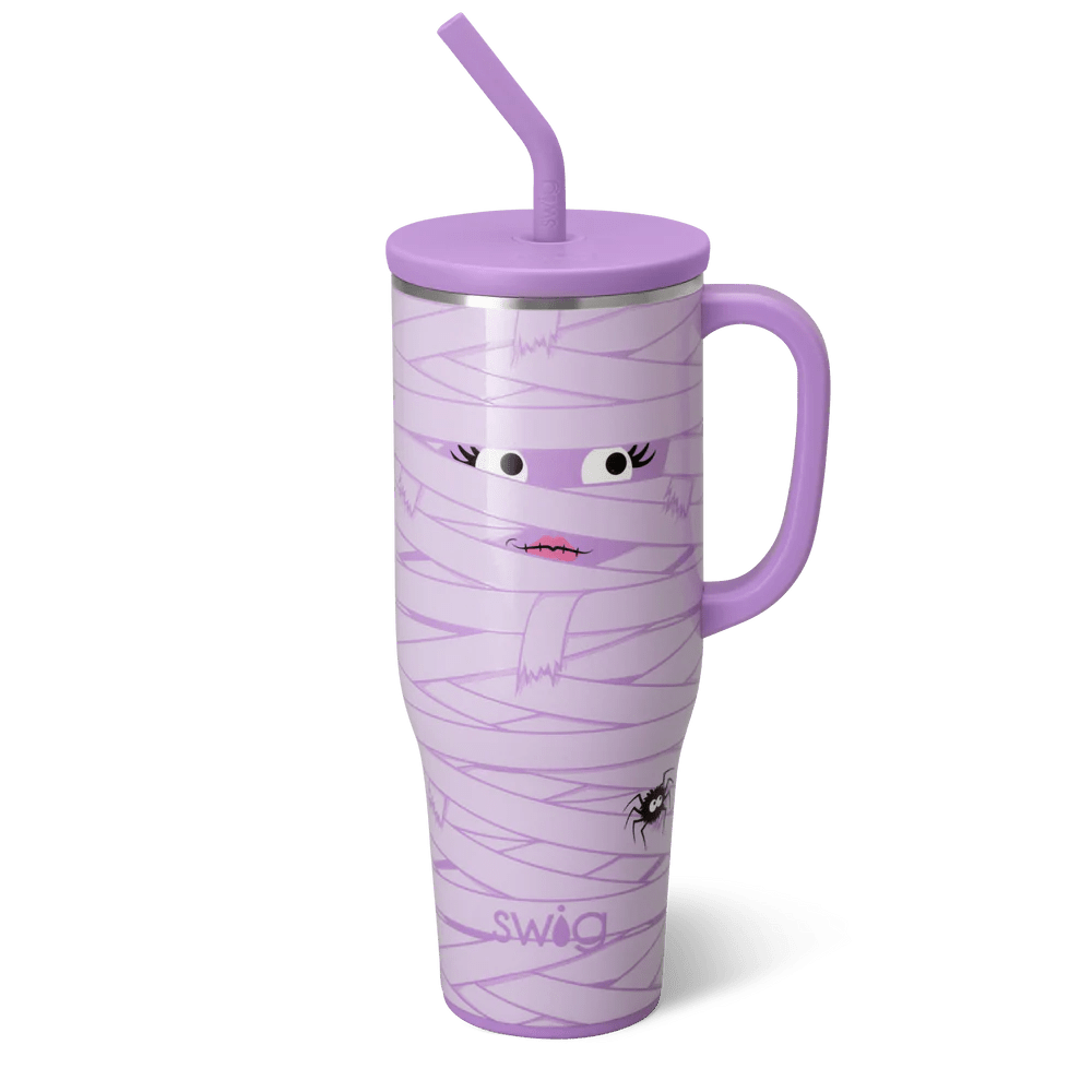 Hydrating has never been easier with our 40oz Insulated Mega Mug! A cup holder-friendly frame, a comfort-grip handle, and a plastic straw with a silicone flexi-tip all come together to create your new favorite Swig.