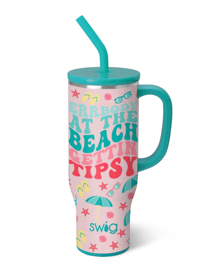 Get ready to party at the beach with Errbody At The Beach Swig Cups! With a playful slogan of "ERRBODY AT THE BEACH GETTING TIPSY", these cups come in a variety of sizes for all your drinking needs. Embrace the beach vibes and add a touch of quirkiness to your party with these fun and versatile cups.