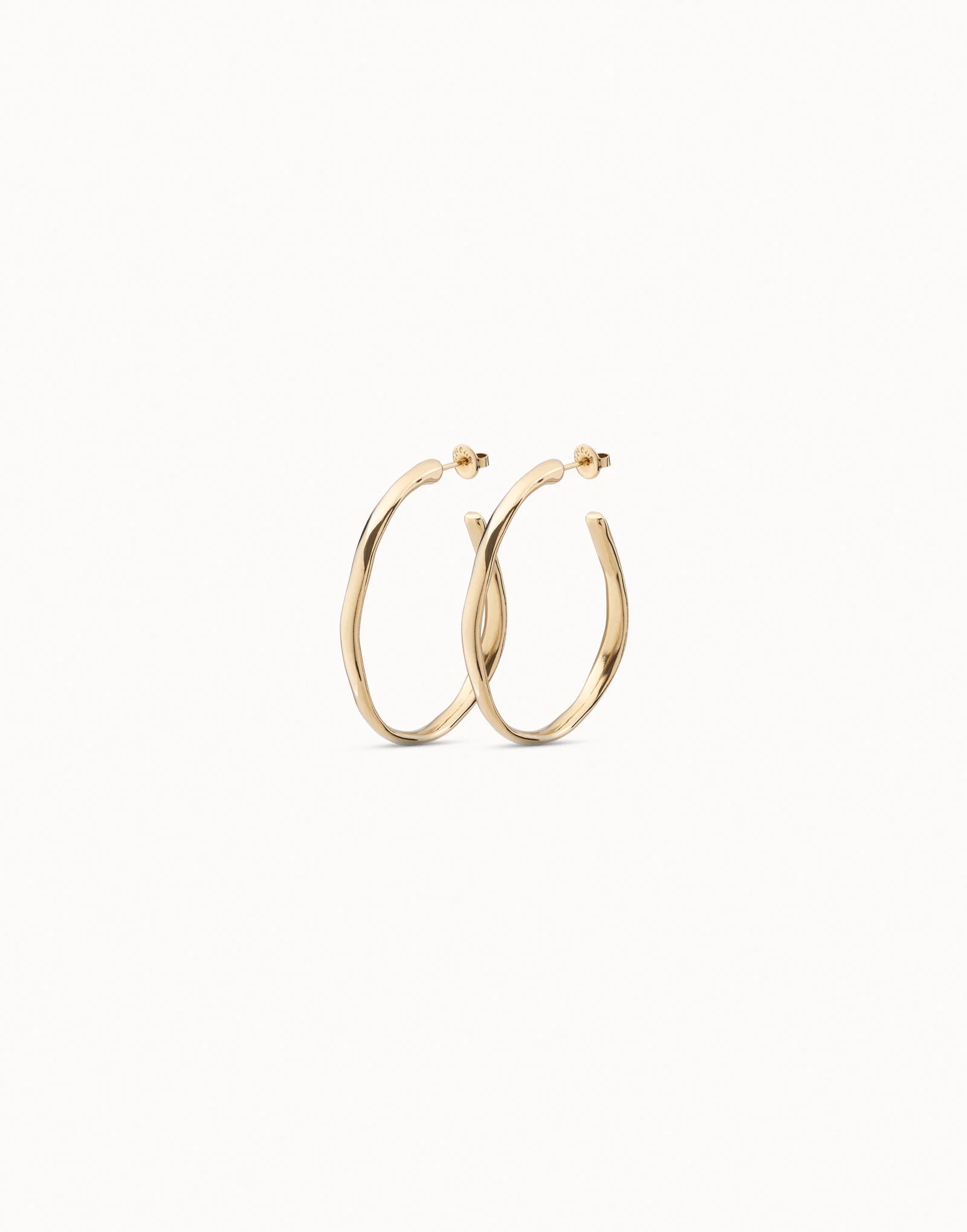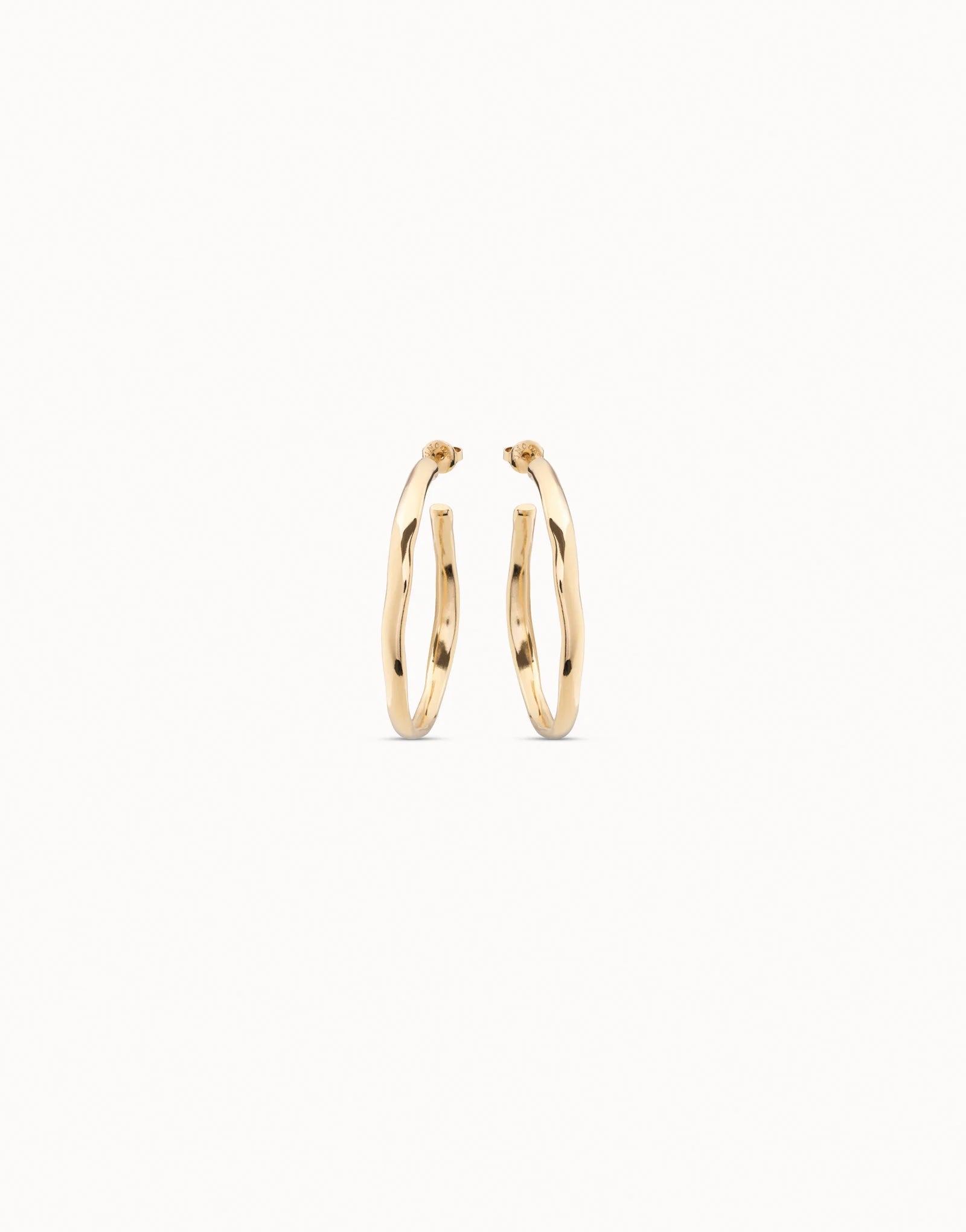 18K gold-plated open hoop earrings with nut clasp. Made by UNOde50 in Spain under a 100% handcrafted process.