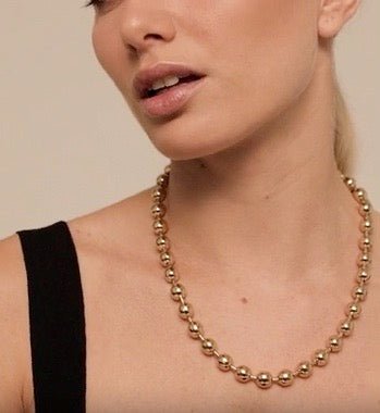 Add the perfect finishing touch to any outfit with this necklace decorated with characteristic round yellow gold pieces and one charm, the signature padlock of UNOde50.