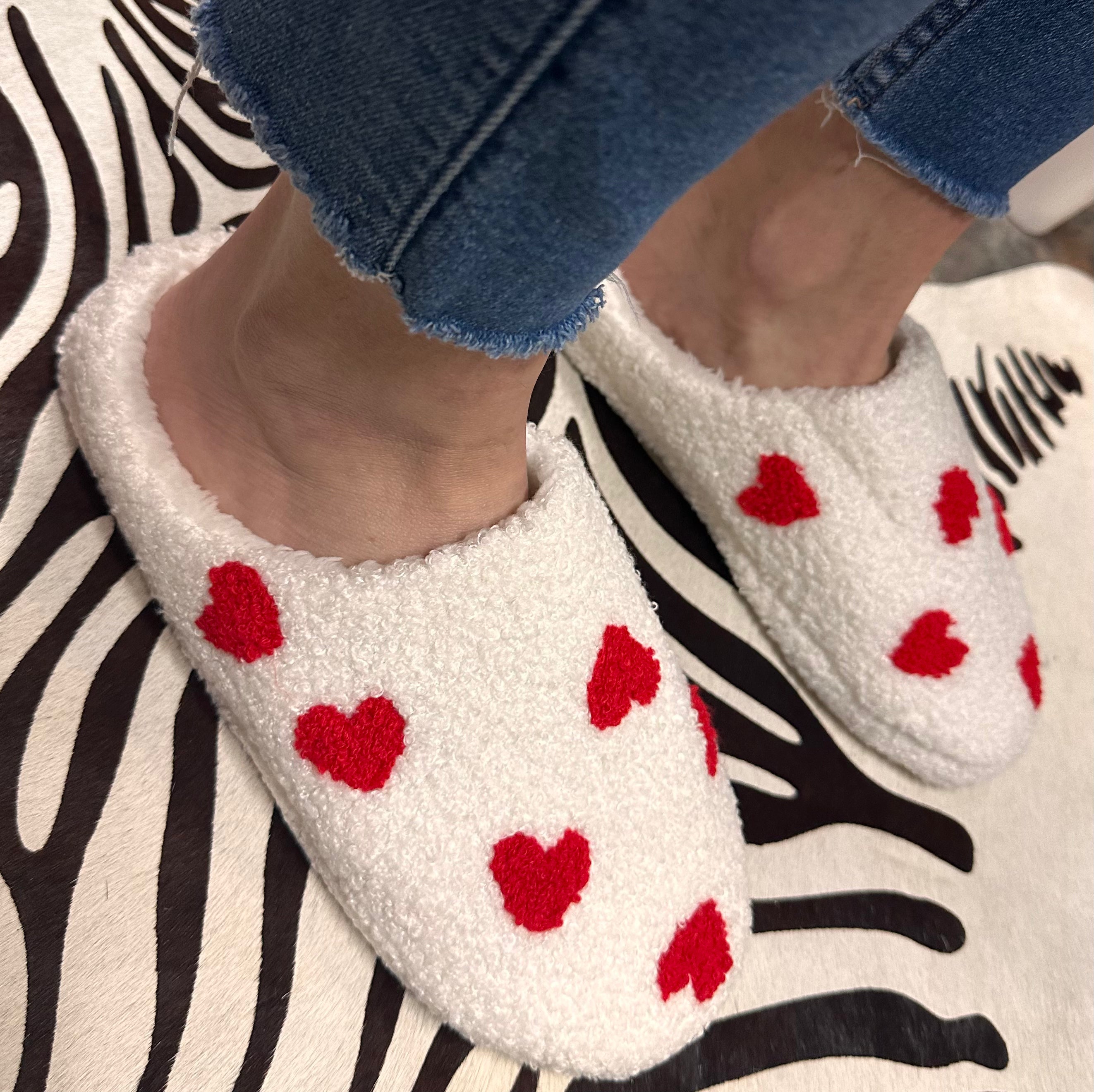 Slip into cozy comfort with these charming ivory slippers adorned with cheerful red hearts. Perfect for lounging at home or gifting to someone special, these soft slippers bring a touch of whimsy to your everyday routine. The playful heart pattern adds personality to your relaxation time, while the plush construction keeps your feet warm and happy. Whether you're padding around the house or curling up with a good book, these delightful slippers are sure to put a smile on your face.