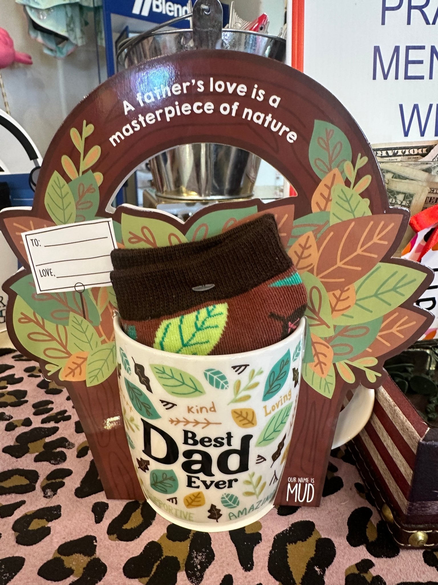 Let your dad know he's the best with this mug and sock set. Perfect for any occasion, this quirky gift will bring a smile to his face. Show your appreciation with a playful touch. Mug and socks included.