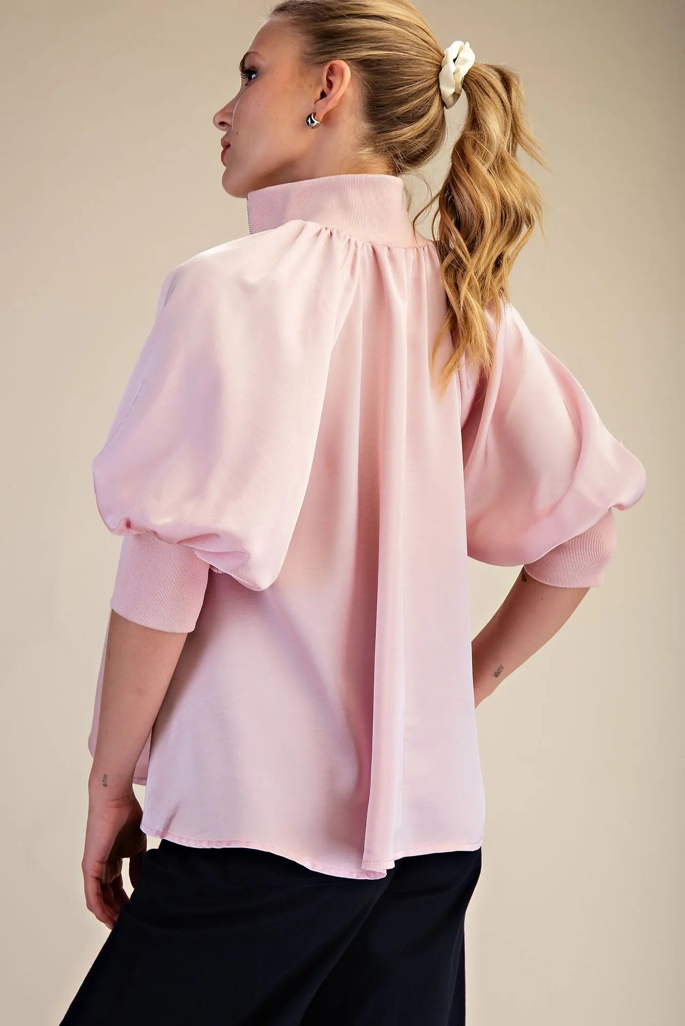 Elevate your everyday style with the Puff & Proper Blouse. Designed with a chic mock neck band and statement puff sleeves, this blouse strikes the perfect balance between classic and on-trend. The structured neckline adds a refined touch while the voluminous sleeves bring just the right amount of drama. Easy to dress up with trousers or keep casual with denim, this timeless piece is a must-have for workdays, weekends, and everything in between.