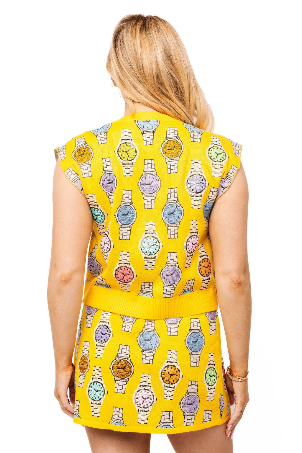 Elevate your wardrobe with this vibrant Queen of Sparkles yellow vest, featuring an eye-catching multi-watch button-up design. Perfect for adding a bold pop of color and playful personality to any outfit, this statement piece combines fun fashion with versatile styling. The structured button-up front offers easy layering over your favorite tops, while the cheerful yellow hue brings instant brightness to your look. Ideal for those who love to stand out and express their unique style with confidence.
