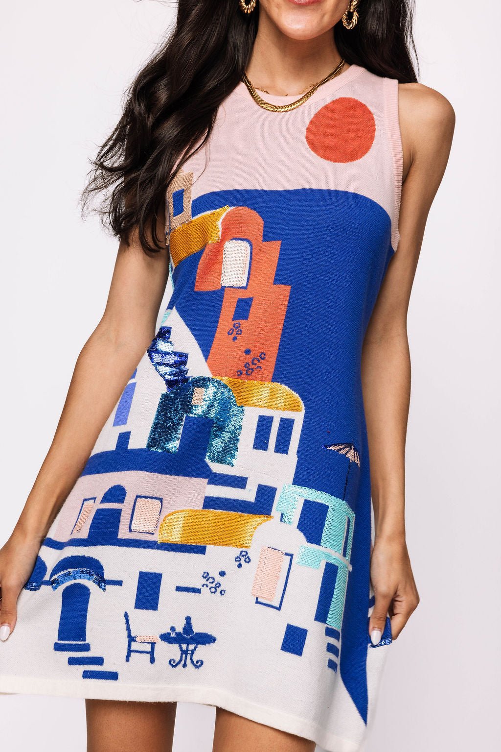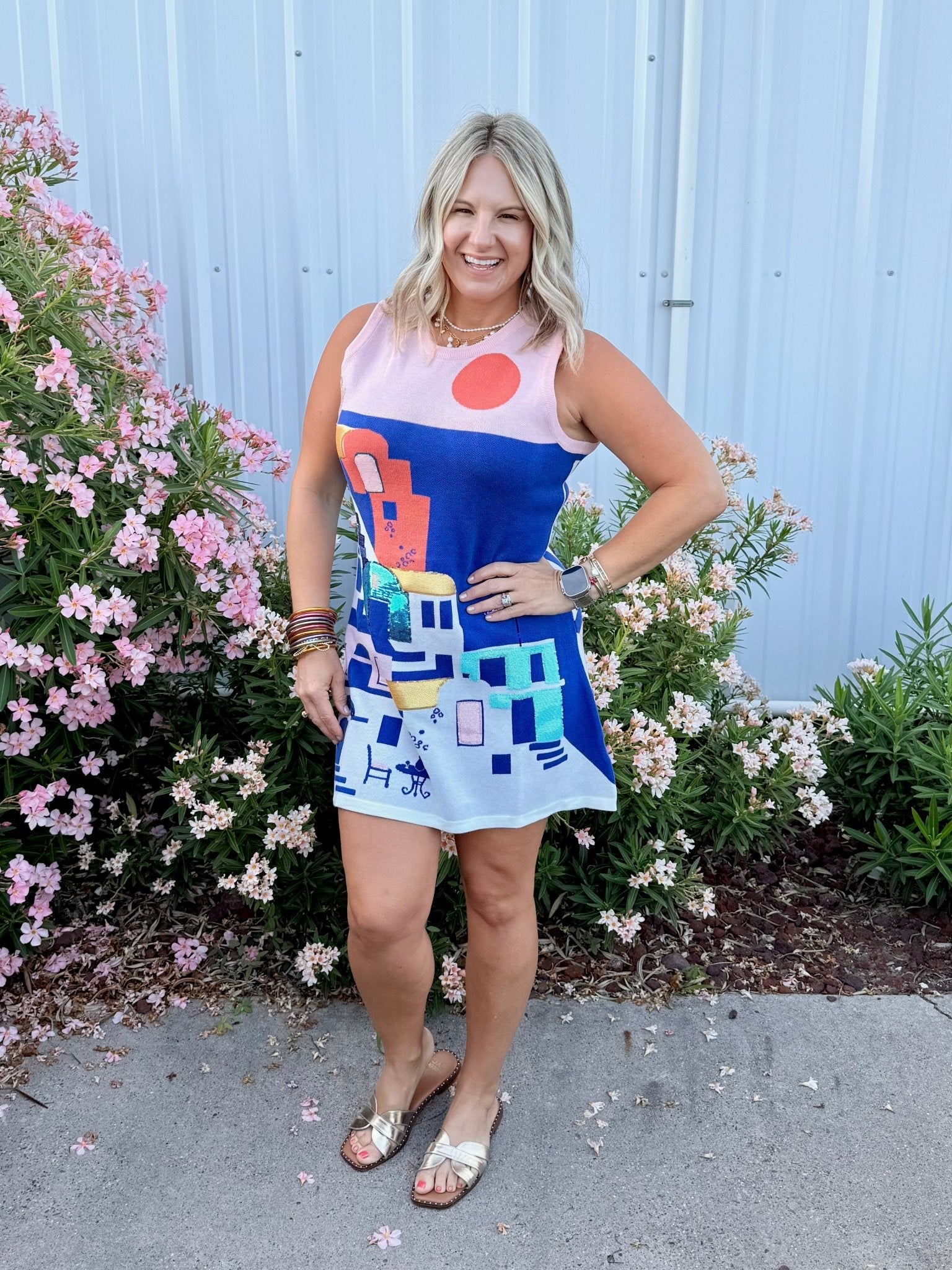In. Love. So classy and different and perfect for a vacation or night out! Grab your new Queen of Sparkles • QOS • Coastal House Scene Knit Tank Dress!