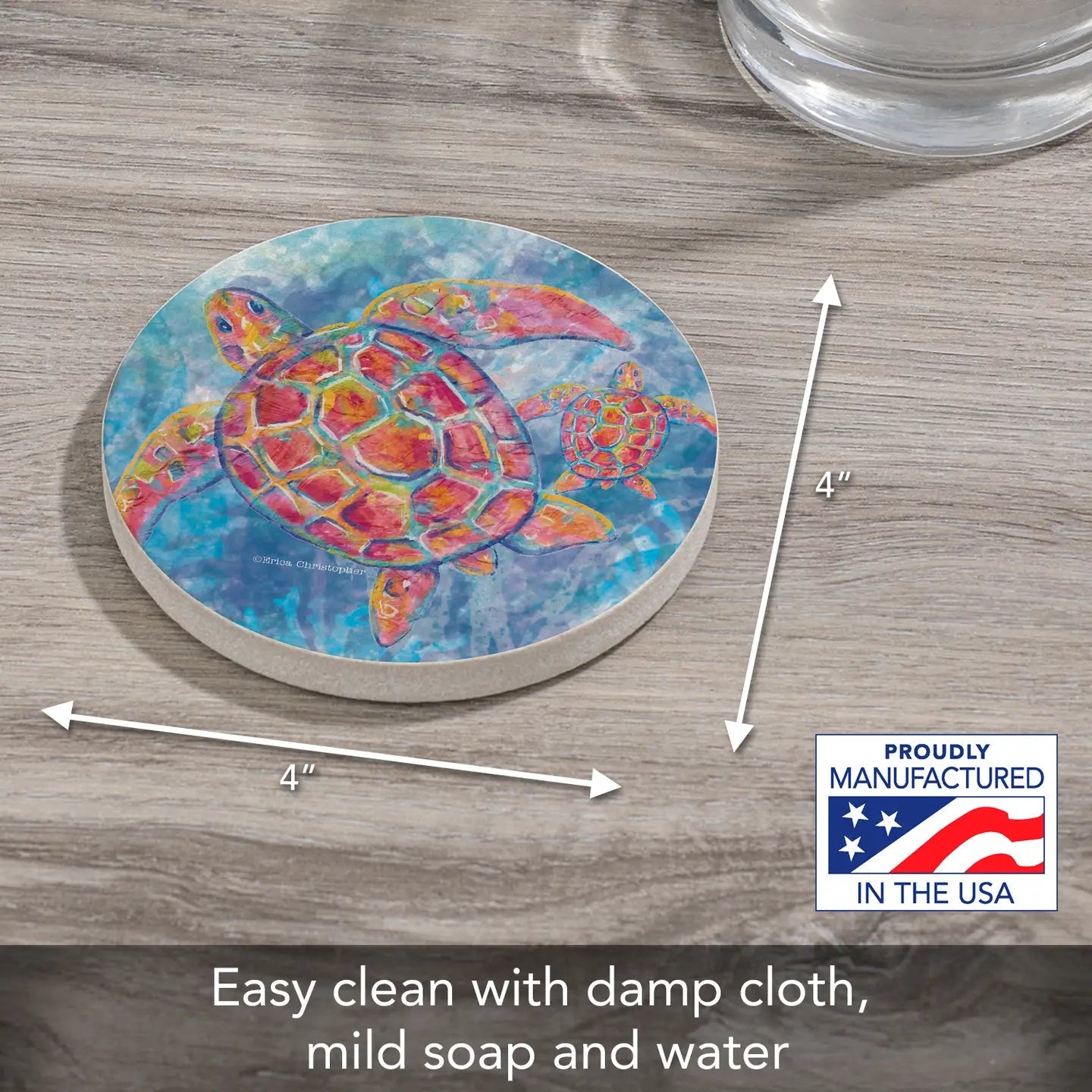 Natural Sandstone coasters are a popular choice for their natural and earthy beauty. Sandstone coasters are made from natural sandstone, which is a sedimentary rock composed of sand-sized minerals or rock grains. Sandstone is a sustainable and environmentally friendly material. Each coaster is printed with an artistic design that compliments the sandstone. These Sandstone Coasters will continually absorb condensation from beverages. Sandstone is also heat tolerant, making it a great choice for protecting tables and countertops from hot beverages. Each coaster measures 4” diameter. This is a single coaster with no packaging.