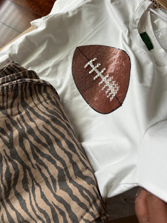 Don't miss out on this must-have addition to your wardrobe. Stand out and make a statement with our Sparkle Football T-shirt. Grab yours today and show everyone that you’re not just a fan, but a true trendsetter in the game!