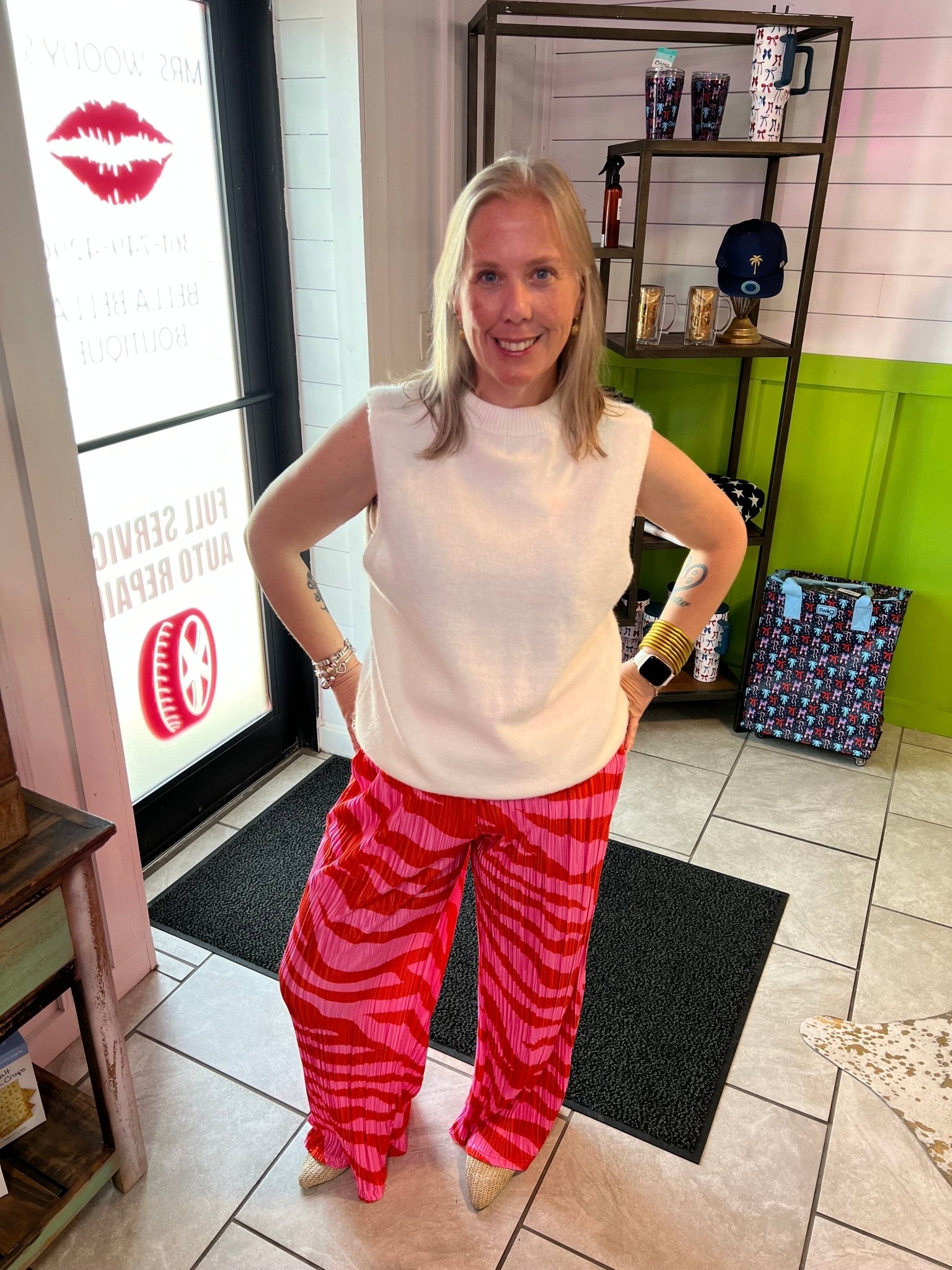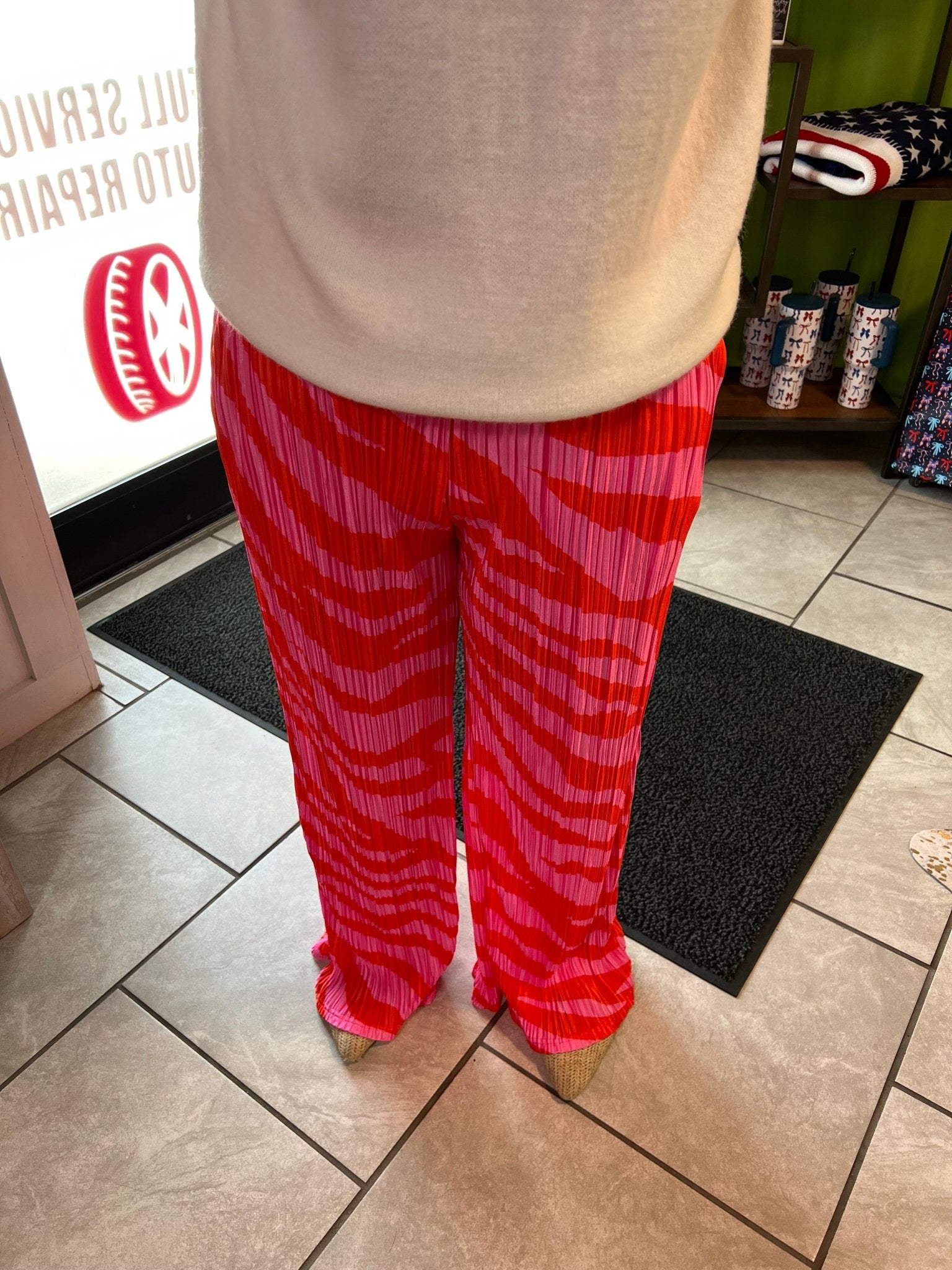 A little wild, totally wearable. The Zebra Heat Plissé Pants were made for doing the most… effortlessly. Lightweight, flowy, and just loud enough with a bold zebra print and comfy elastic waist that feels like pajamas (but way cuter). These are the throw on and go pants you’ll keep reaching for. SIZE INFO: 🎱 Model Measurements: 5’6” | 175 lbs | size 12 | 36D 🎱 Model Wearing: L/XL (but could easily fit into a S/M for a more snug fit — these have lots of stretch) 🎱 See the size chart tab for more details!
